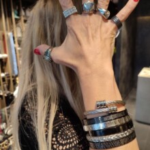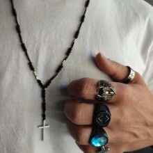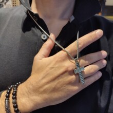 Close up in male hands with silver jewelry
