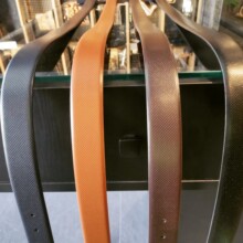 Tie, belt, wallet, cufflinks, pen lying on the skin, can be used as background