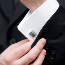 elegant young fashion man fixing cufflinks