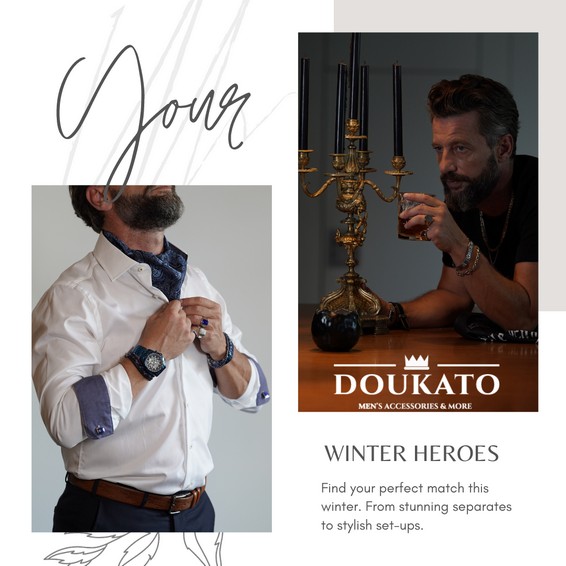 Κάθε εικόνα ξετυλίγει ένα κεφάλαιο από την εξέλιξη του Doukato - ένα ταξίδι όπου η κομψότητα συναντά την αυθεντικότητα και το σύγχρονο ανδρικό στυλ αποκτά ταυτότητα.
