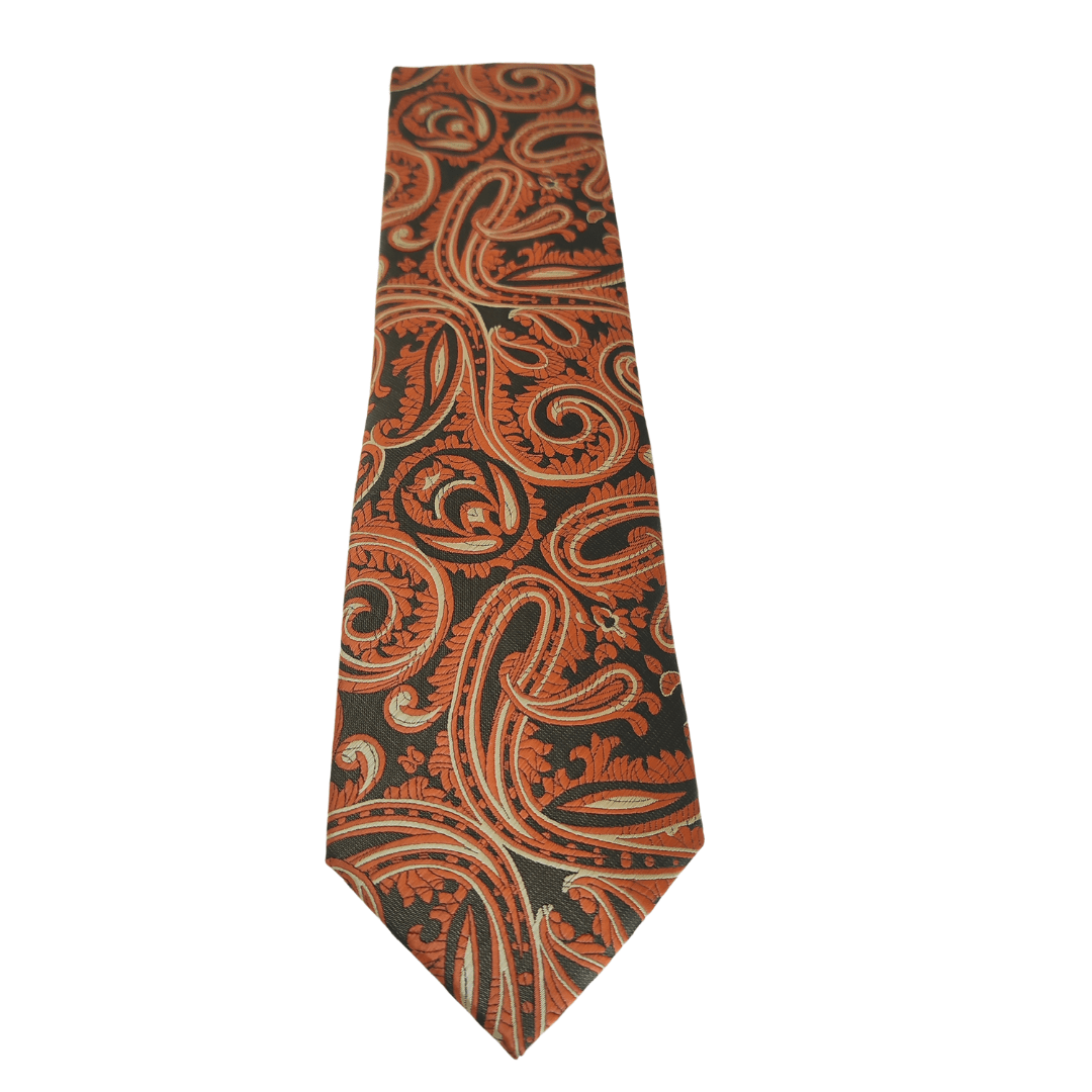 Γραβάτα μετάξι μαύρη-πορτοκαλί-μπεζ
