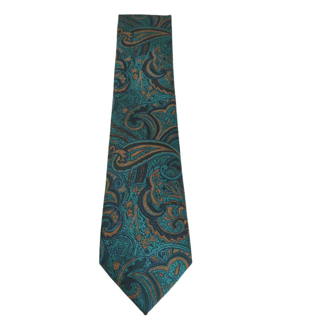 Γραβάτα μετάξι πετρόλ-χρυσό