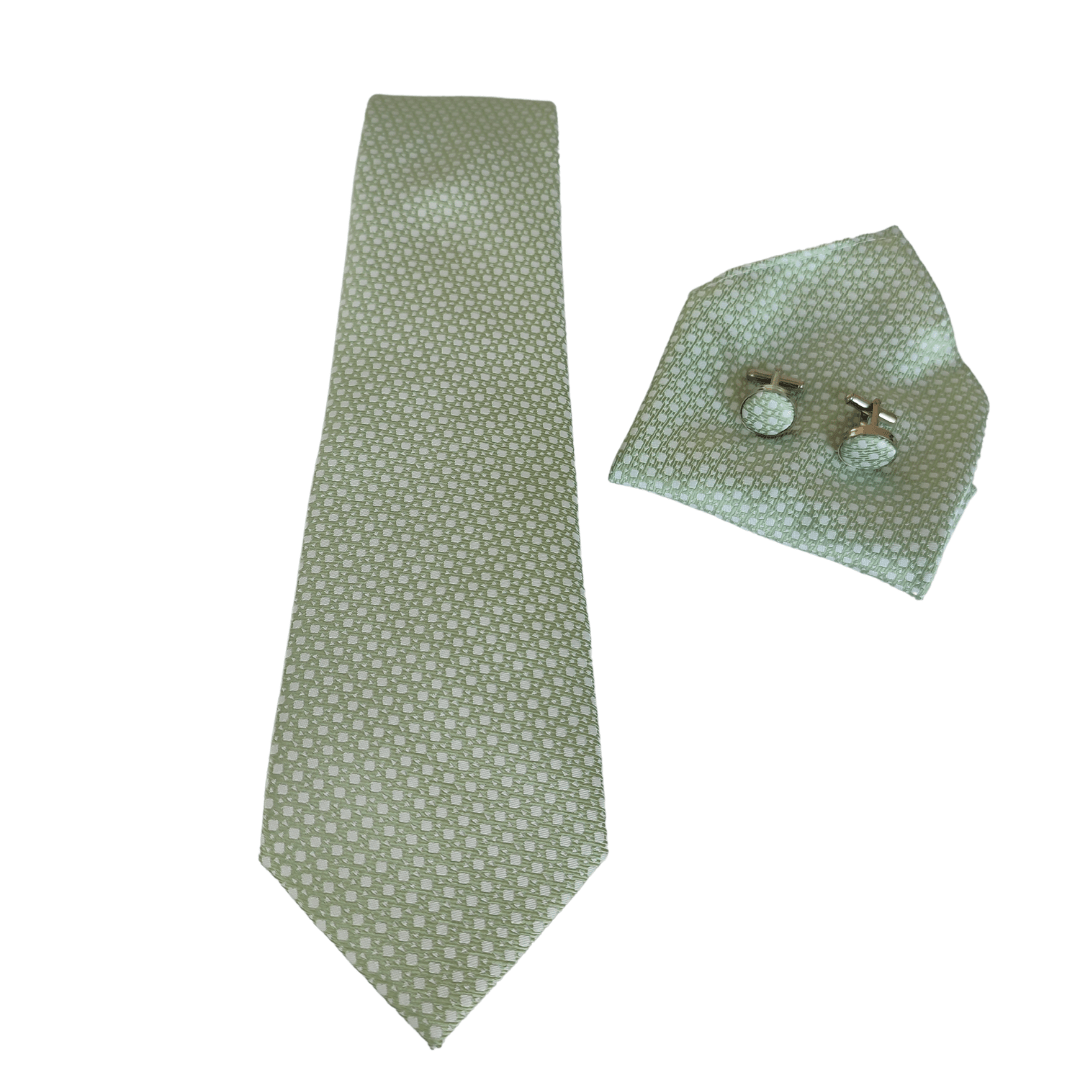 Γραβάτα μετάξι πράσινη ανοιχτή-εκρού