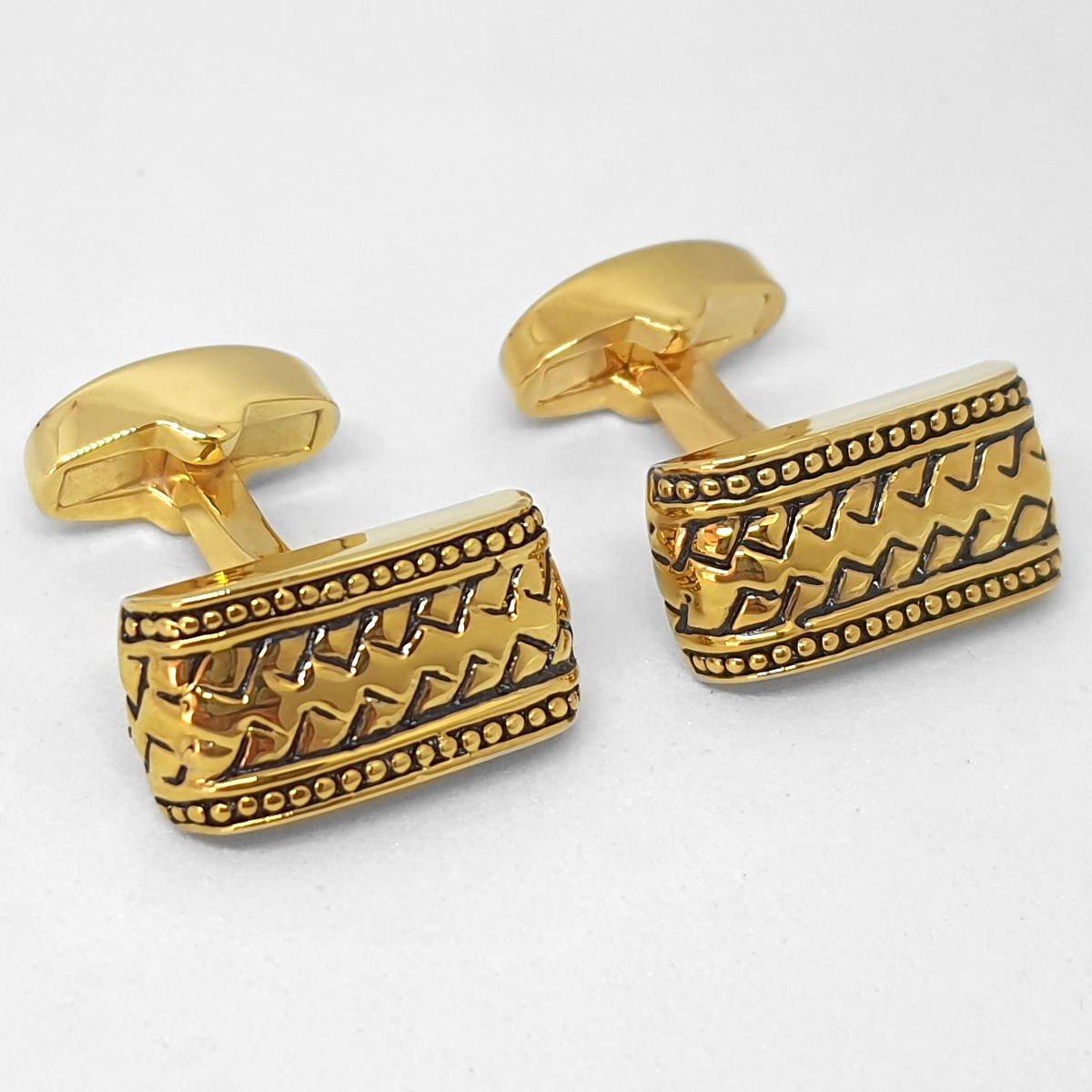 Επίχρυσα ορθογώνια μανικετόκουμπα με γραμμές από ανοξείδωτο ατσάλι