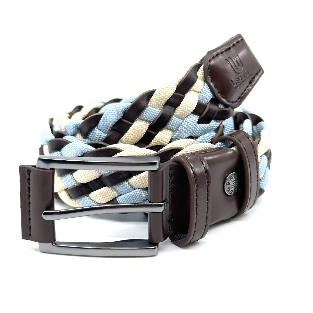 Πλεκτή δερμάτινη ζώνη μπλέ με Μπέζ, με ποιοτική αγκράφα (eco friendly free nickel). Με άψογα, ποιοτικά Καφέ δερμάτινα τελειώματα, με ανάγλυφο το λογότυπο legend. Κατασκευασμένη από υλικά άριστης ποιότητας, δέρμα – και σχοινί, με μεγάλη ανθεκτικότητα και αντοχή στο χρόνο. Αυτή η πλεκτή ζώνη έχει τέλεια εφαρμογή γιατί κουμπώνει εύκολα σε όποιο σημείο θέλετε.