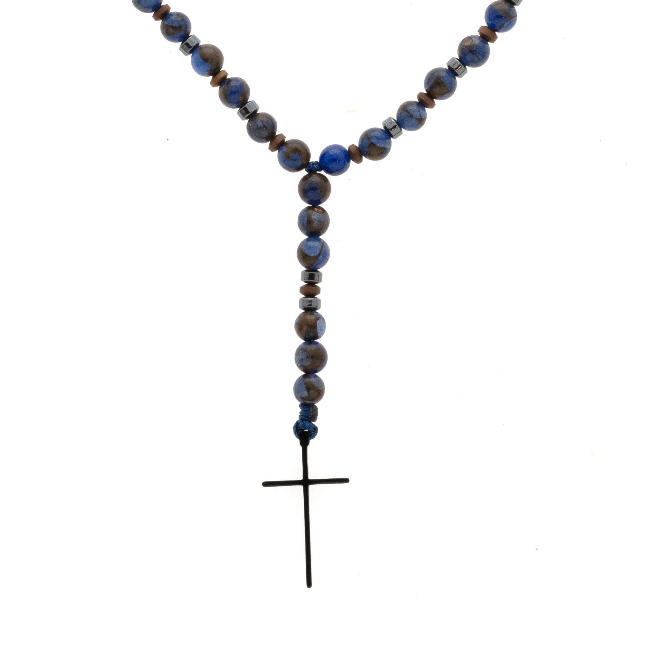 Ανδρικό χειροποίητο ροζάριο με ημιπολύτιμους λίθους από κλουαζονέ(6mm) και αιματίτες ροδέλα (4mm) και μπρονζέ ματ(4mm).