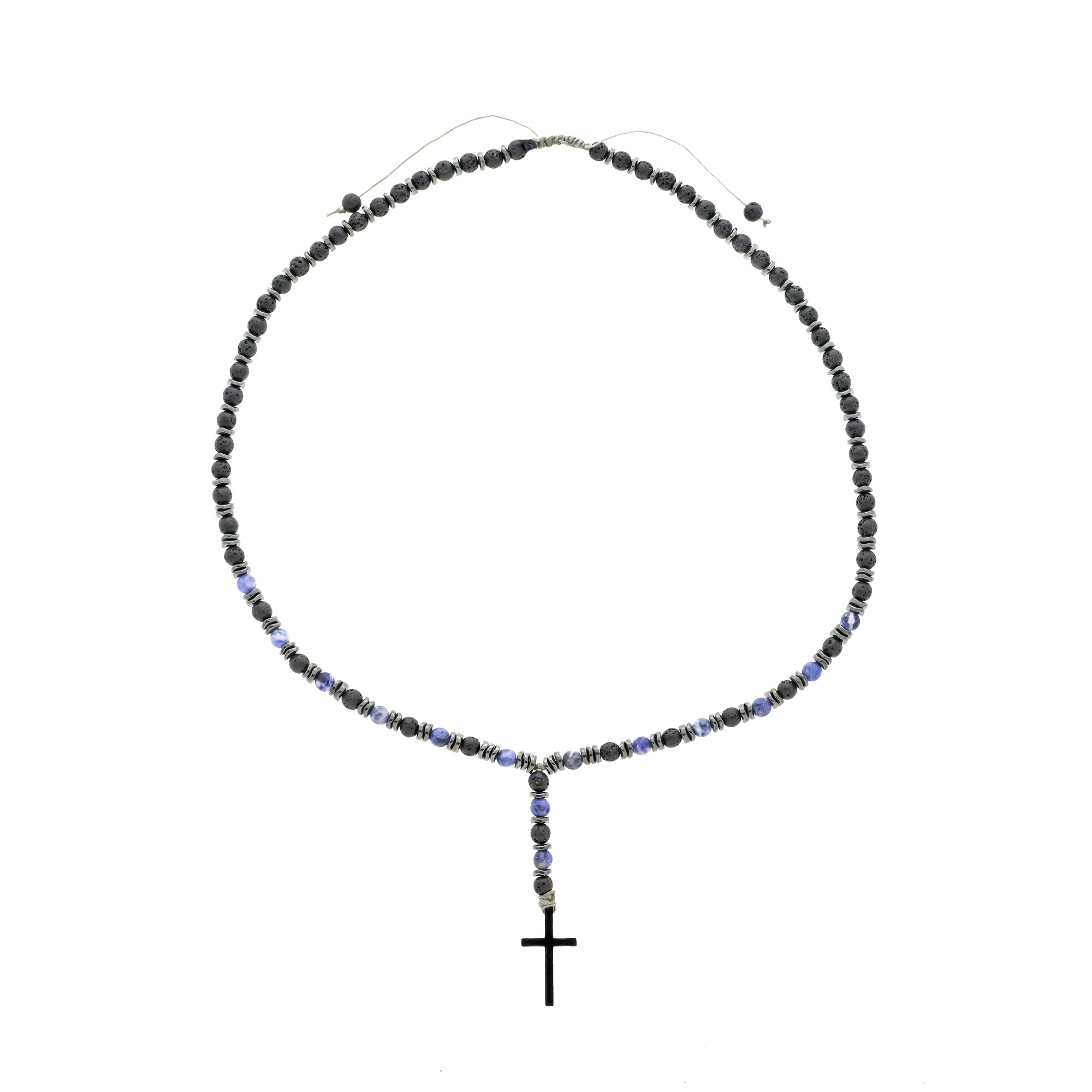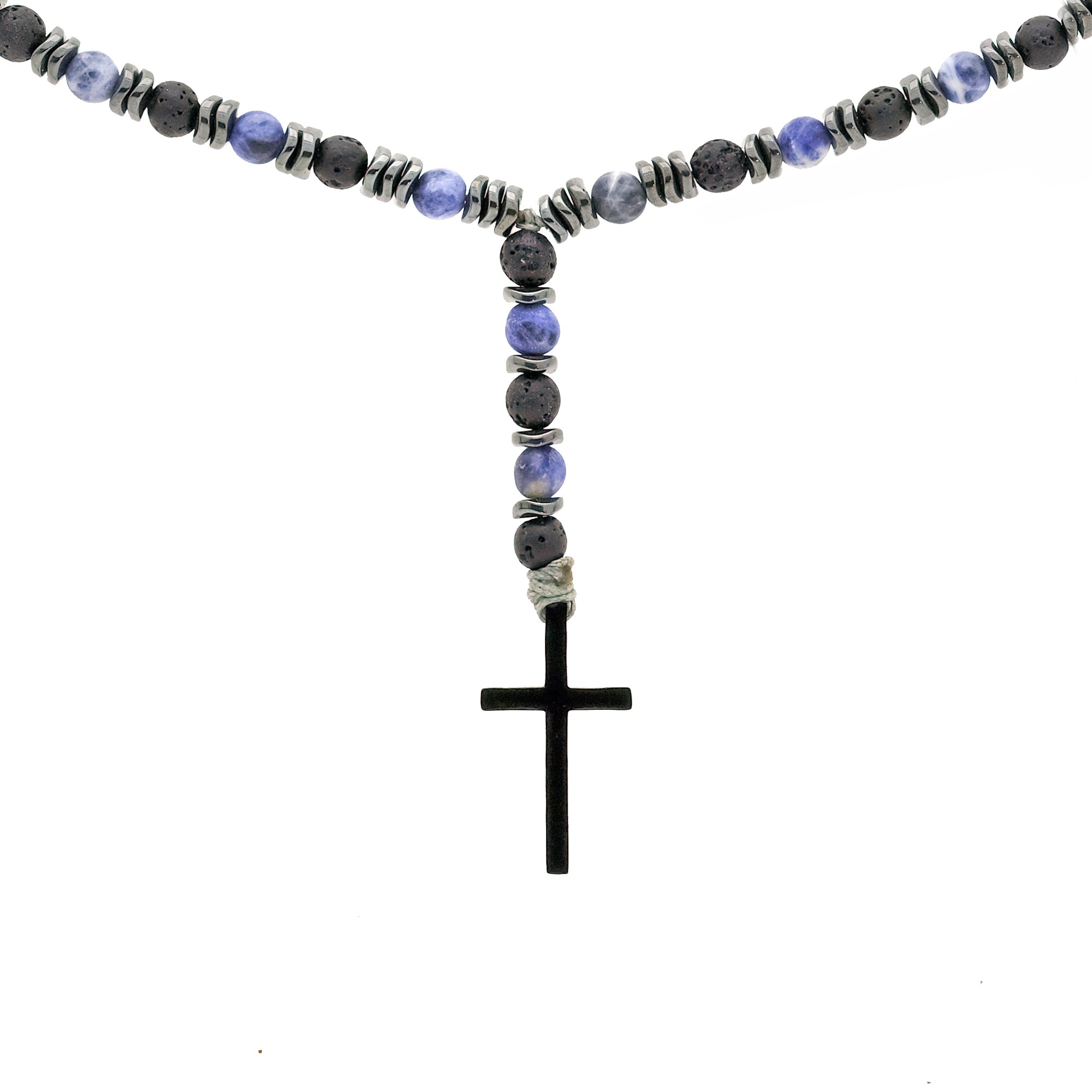 Ανδρικό χειροποίητο ροζάριο με ημιπολύτιμους λίθους από λάβα(6mm), σοδαλίτη(6mm) και αιματίτη ροδέλα κυματιστή(6mm).