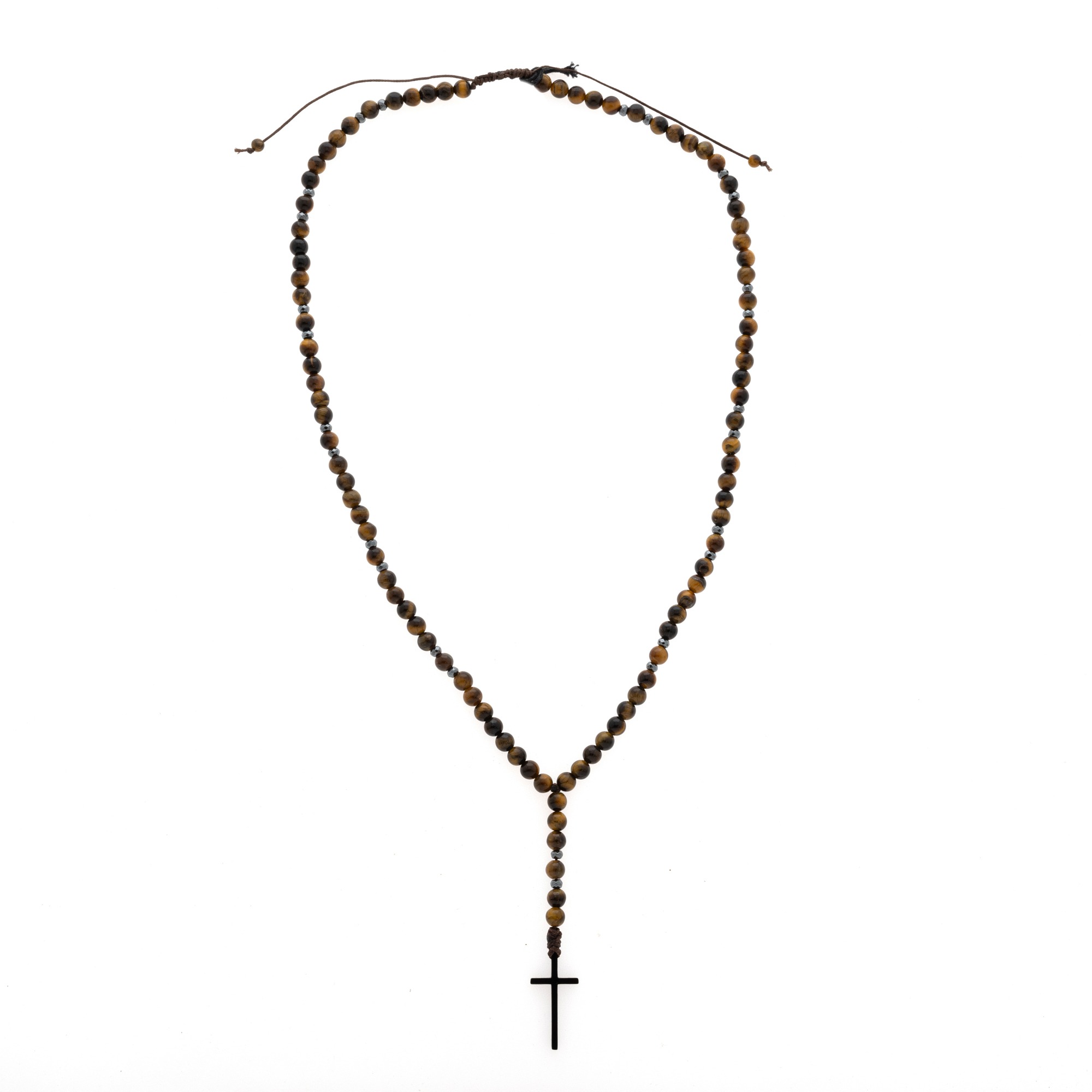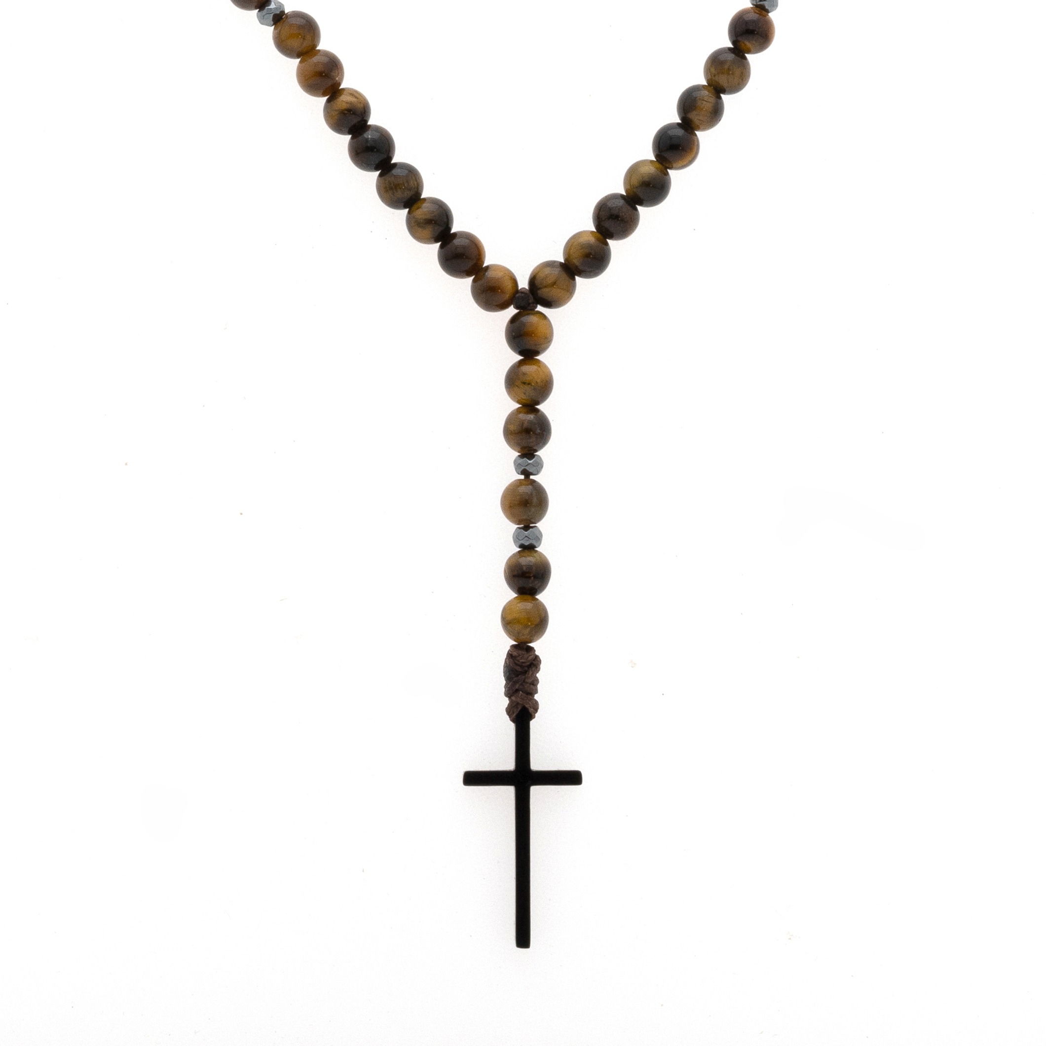 Ανδρικό χειροποίητο ροζάριο με ημιπολύτιμους λίθους από μάτι τίγρης(6mm) και αιματίτη ροδέλα διαμαντέ(4mm).