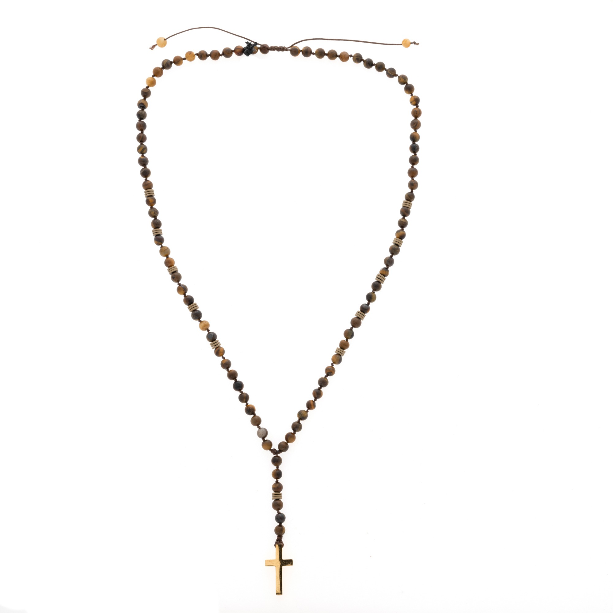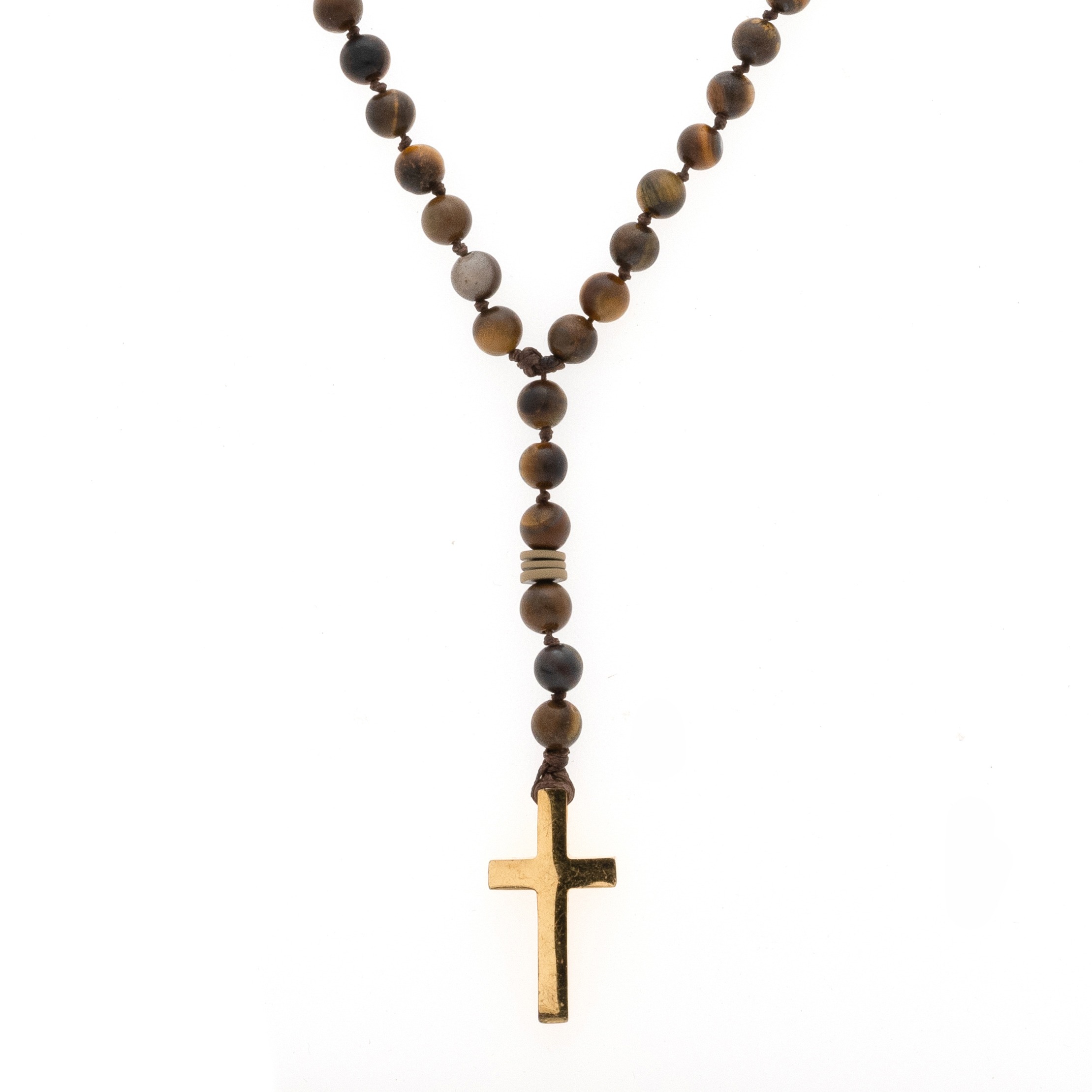 Ανδρικό χειροποίητο ροζάριο με ημιπολύτιμους λίθους από μάτι τίγρης ματ(6mm) και αιματίτη ροδέλα ματ μπεζ(6mm).