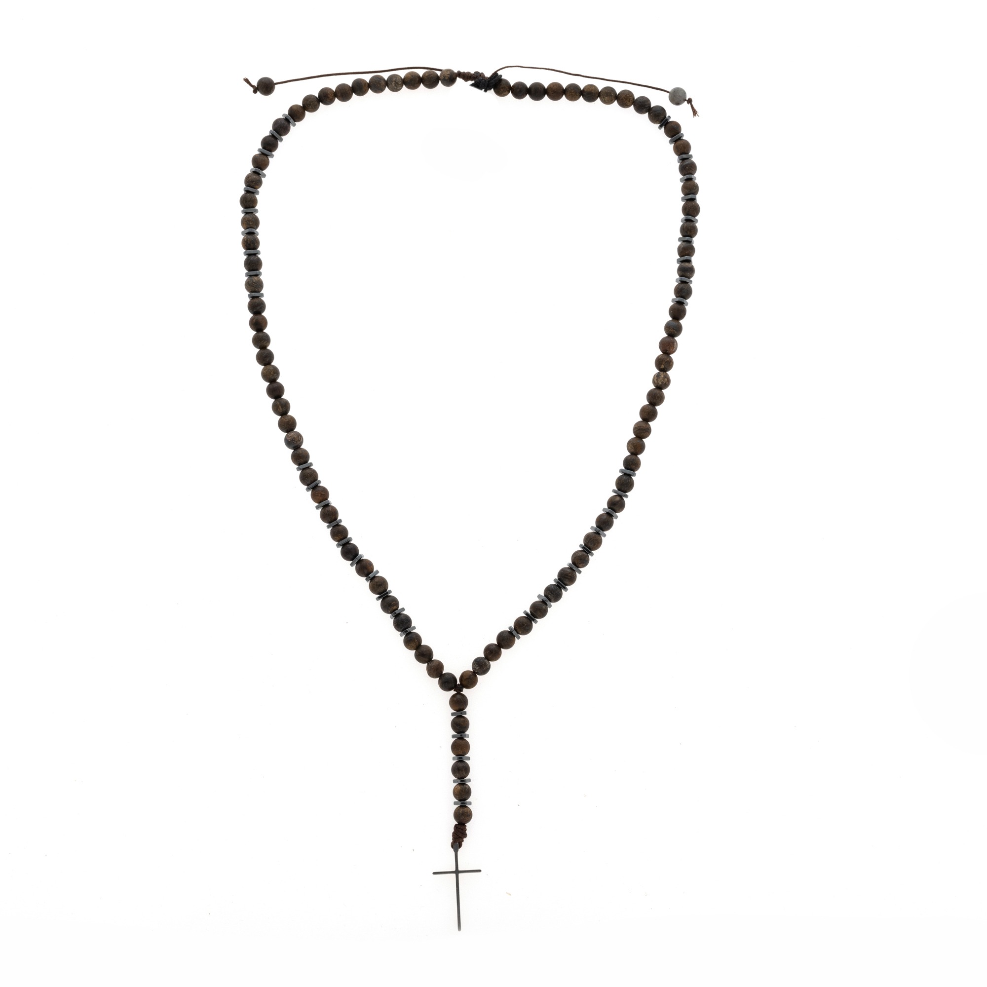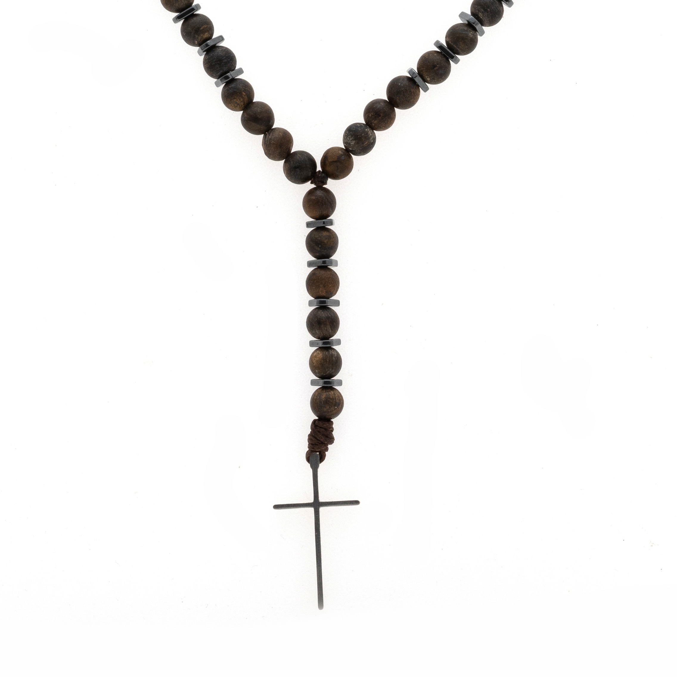Ανδρικό χειροποίητο ροζάριο με ημιπολύτιμους λίθους από μπρονζίτη(6mm) και αιματίτη τρίγωνο(6mm).