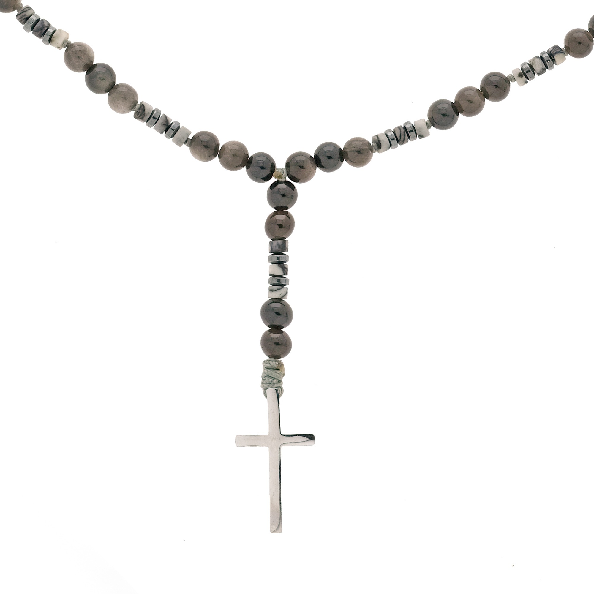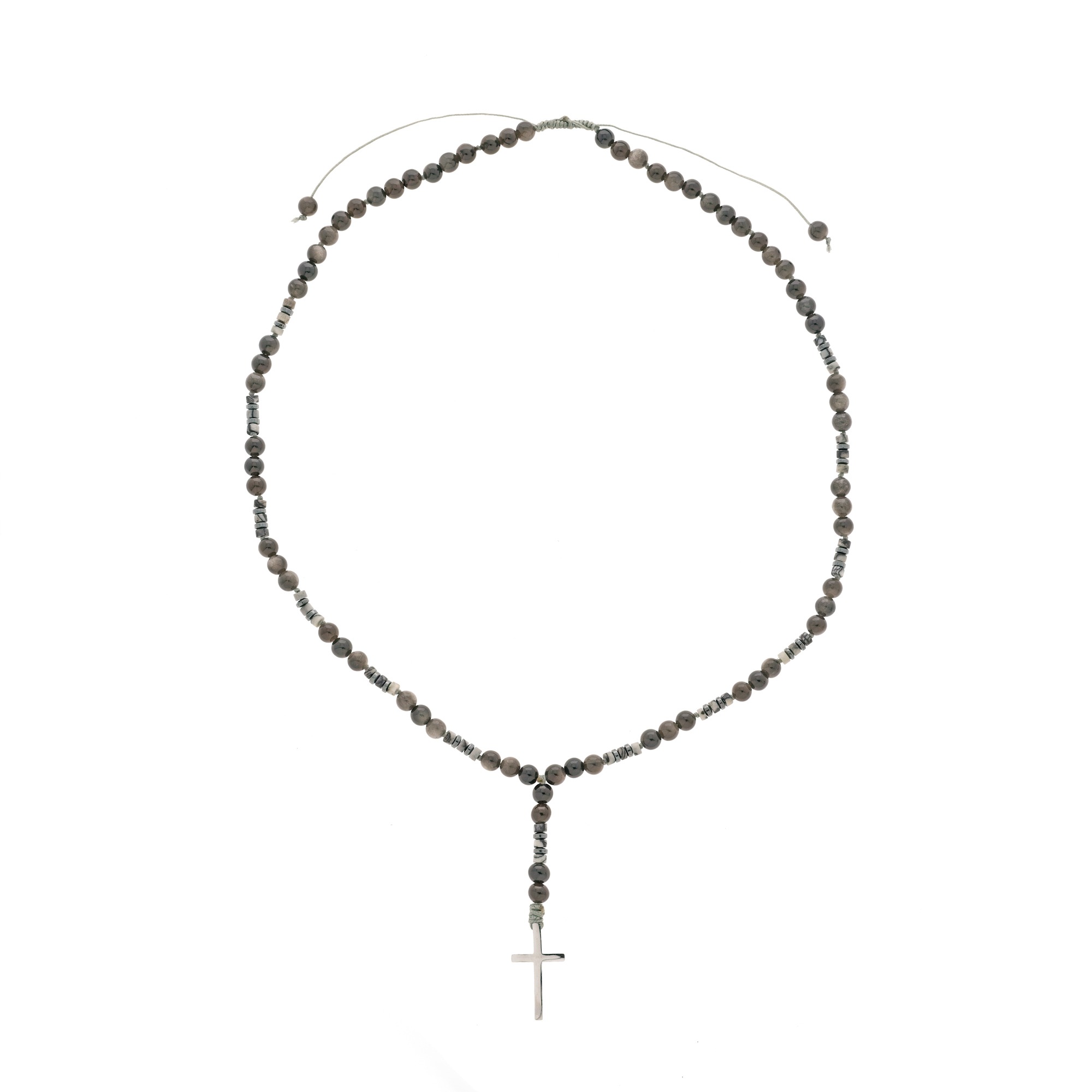 Ανδρικό χειροποίητο ροζάριο με ημιπολύτιμους λίθους από οψιδιανό(6mm), αχάτη ροδέλα (4mm) και αιματίτη ροδέλα(4mm).