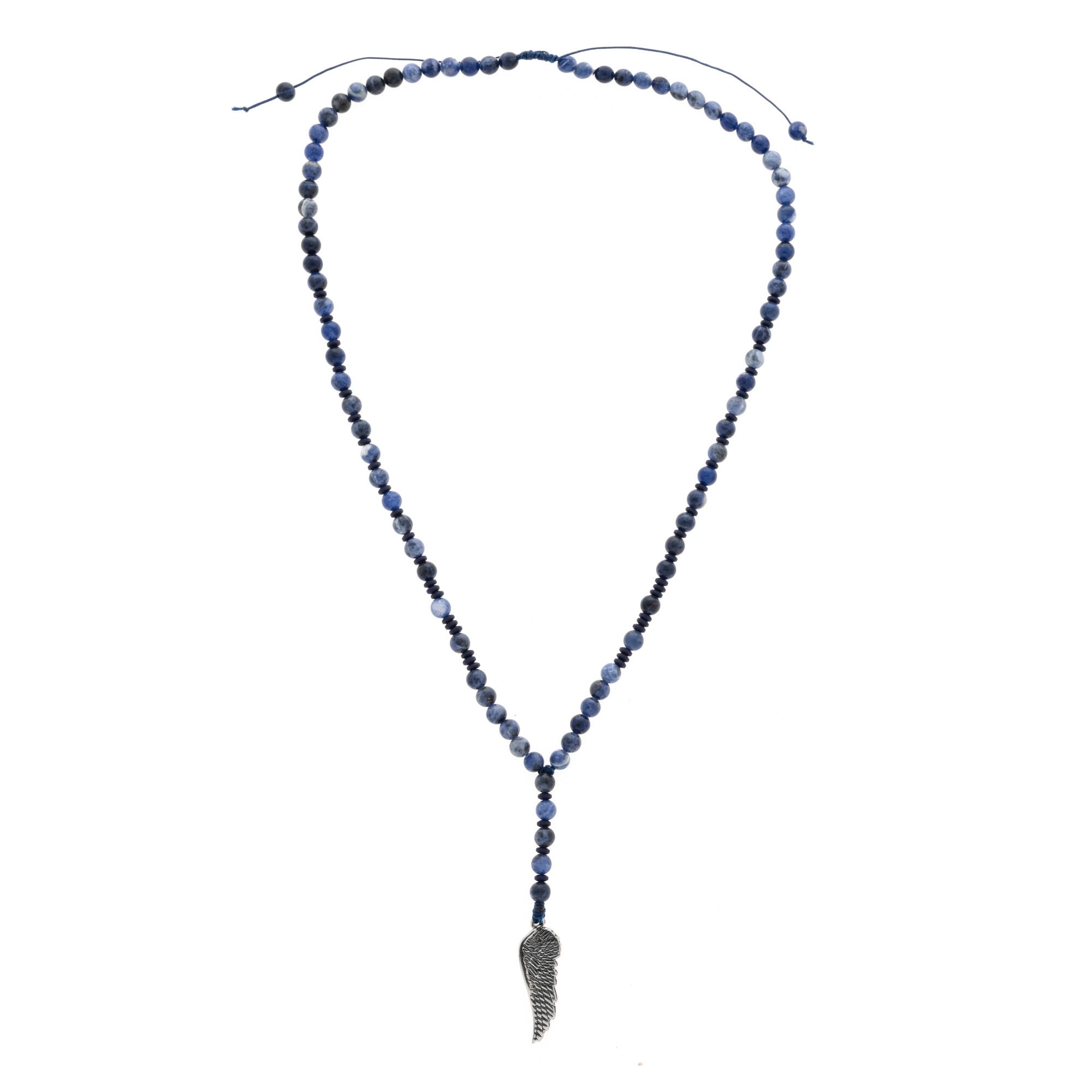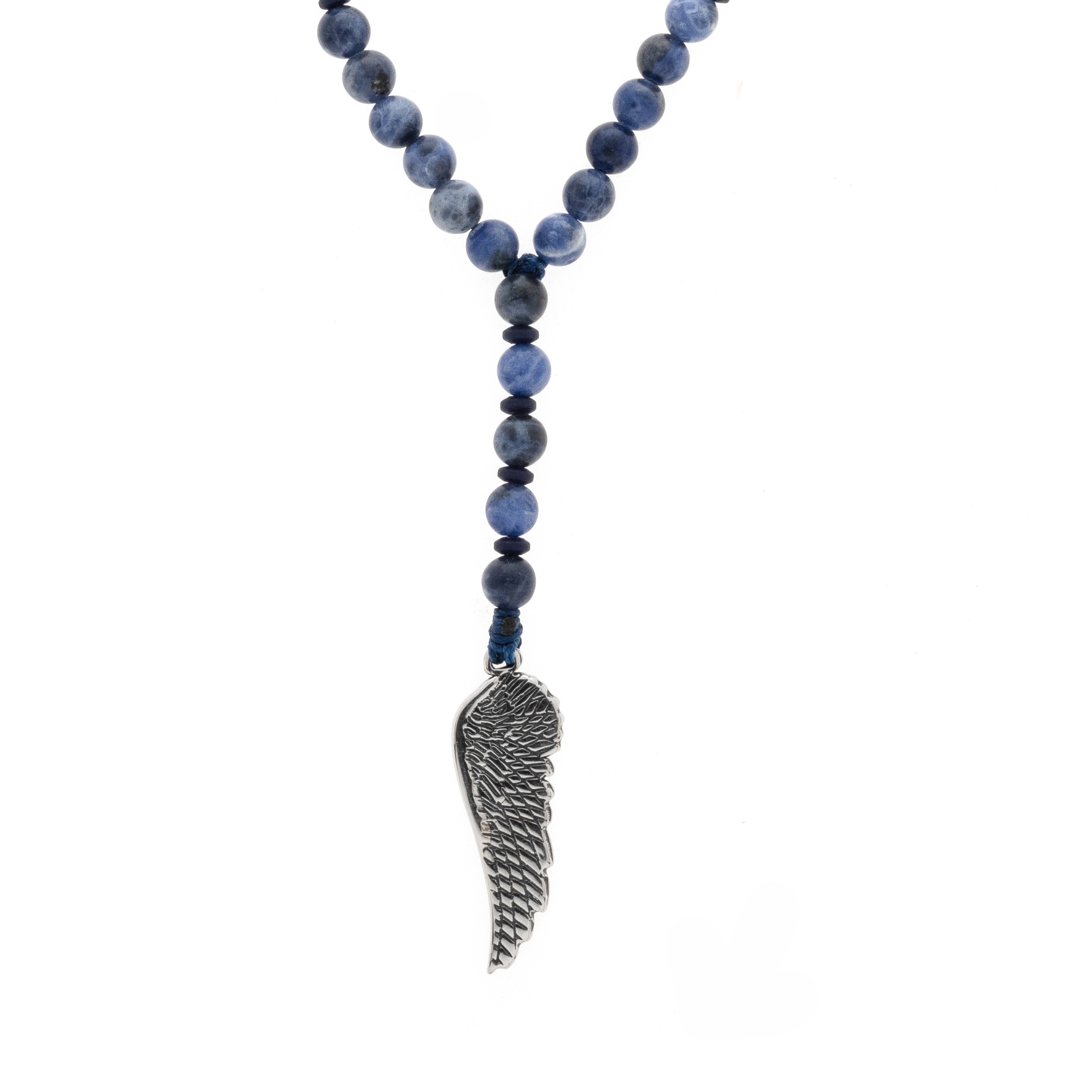 Ανδρικό χειροποίητο ροζάριο με ημιπολύτιμους λίθους από σοδαλίτη(6mm) και αιματίτη ροδέλα ματ μπλε(4mm).