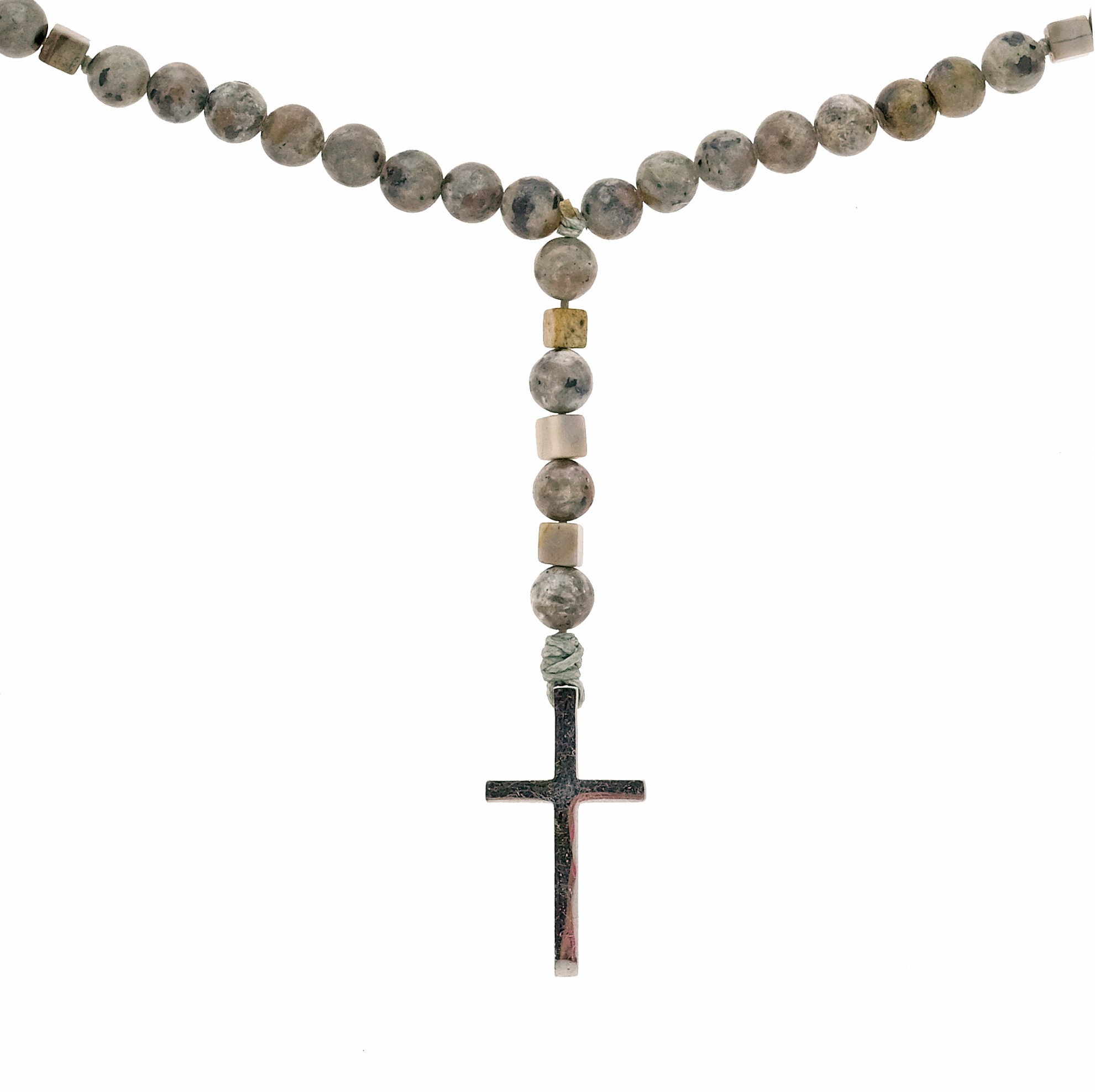 Ανδρικό χειροποίητο ροζάριο με ημιπολύτιμους λίθους από flamestone(6mm) και λίθους τετράγωνους(4mm).