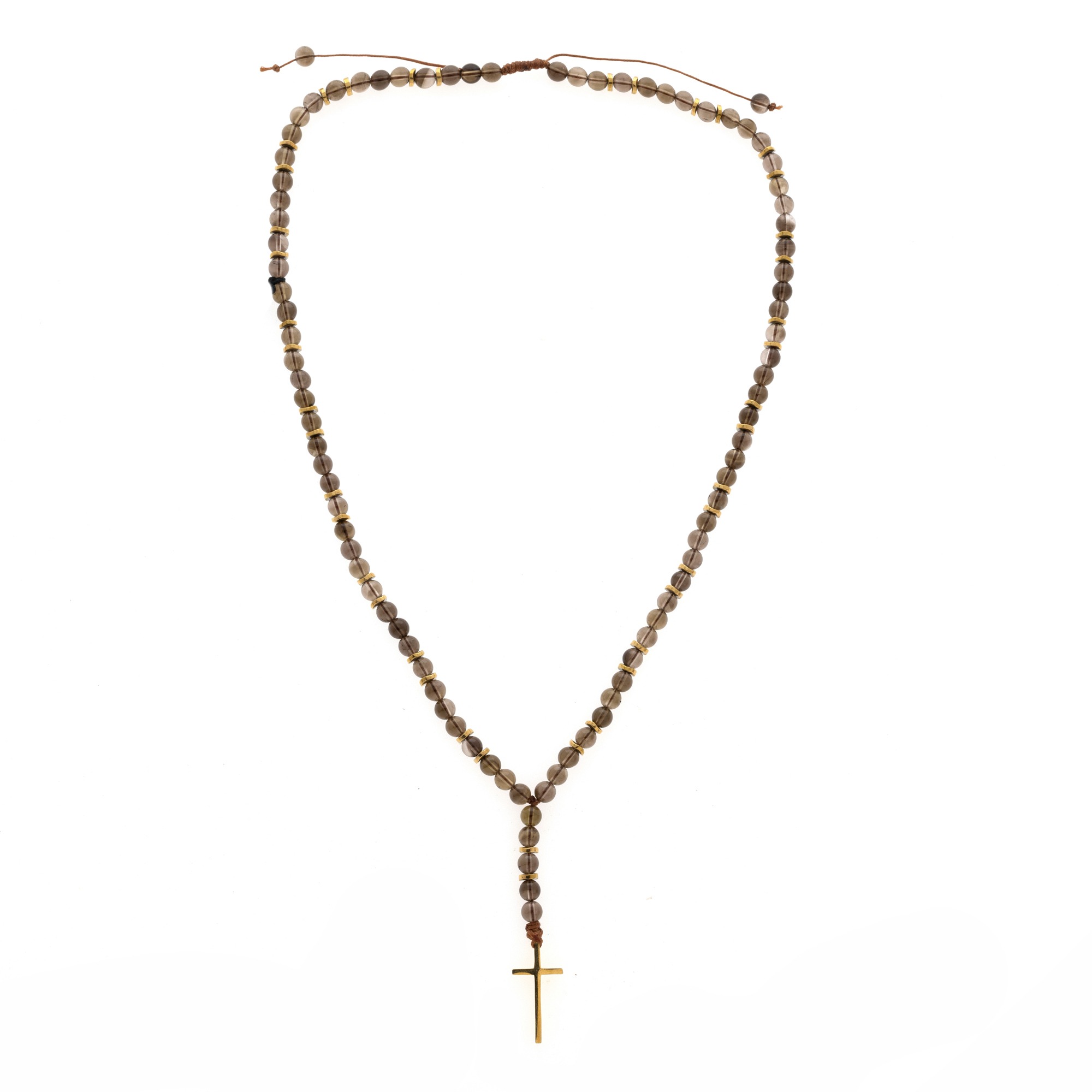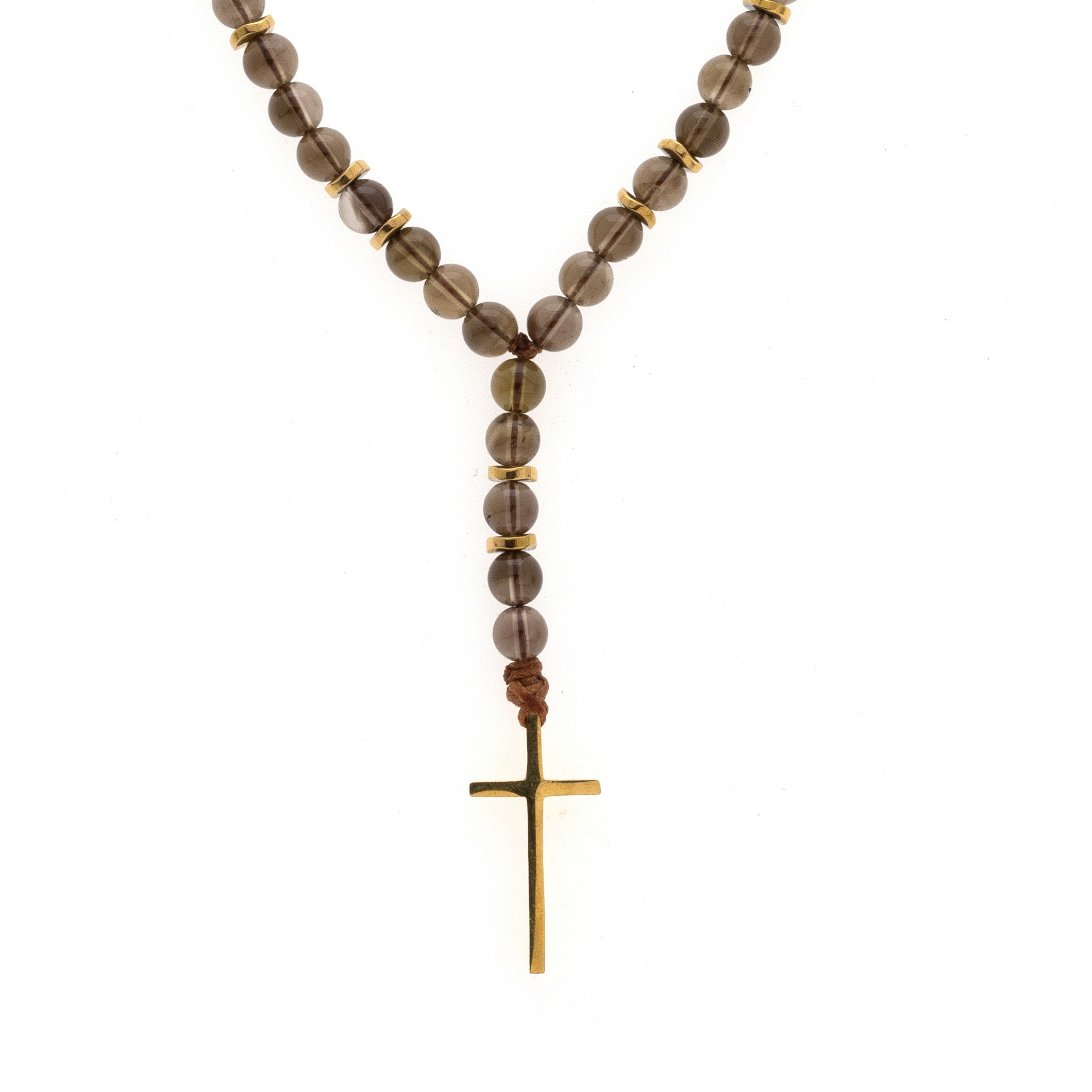 Ανδρικό χειροποίητο ροζάριο με ημιπολύτιμους λίθους από quartz smoky(6mm), αιματίτη ροδέλα κυματιστή χρυσή(6mm).