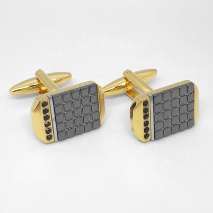 Επίχρυσα μανικετόκουμπα με μαύρες πέτρες από ανοξείδωτο ατσάλι
